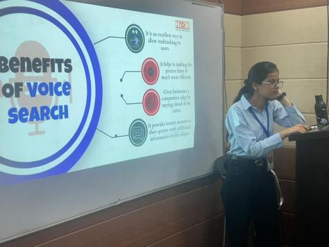 The seminar on Voice Search optimization was presented by Lashika (HiDM Student). Firstly, she explained what is voice search optimization and how text search optimization is different from voice search optimization. She briefly explained the voice search process, the effect of AI in voice search optimization, and voice search strategies that any company should implement to grow brand value.