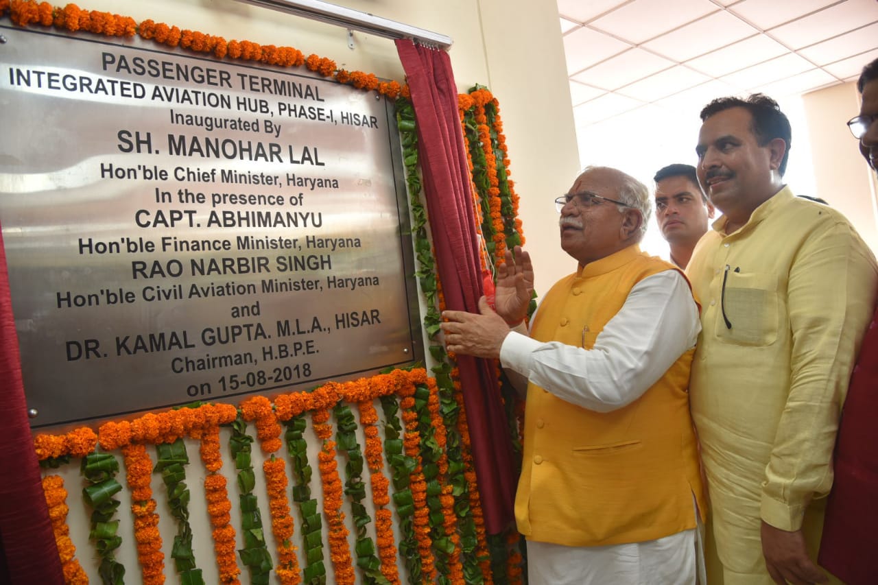 Mr. Manohar Lal Khattar Chief Minister of Haryana officially inaugurated the Hisar Airport on Independence Day 15th August 2018. It was an incredible gift given to Hisar people. They were waiting for it since 48 years. The announcement of the airport was done on 29 December 2014 and it got completed in 2018.It took almost 3 years to make this dream come true.The flights will become functional from October. The inauguration took place at 12.30pm and at 1.00 pm.